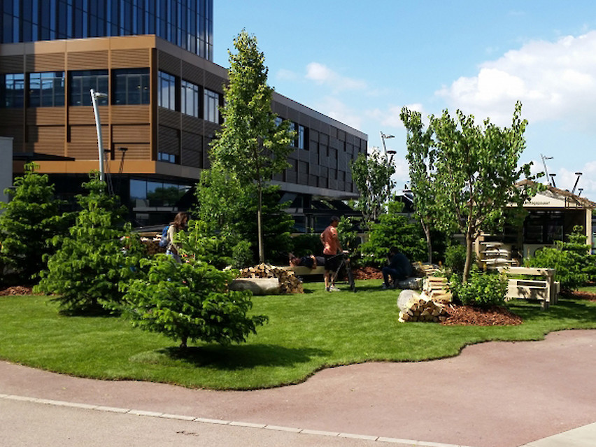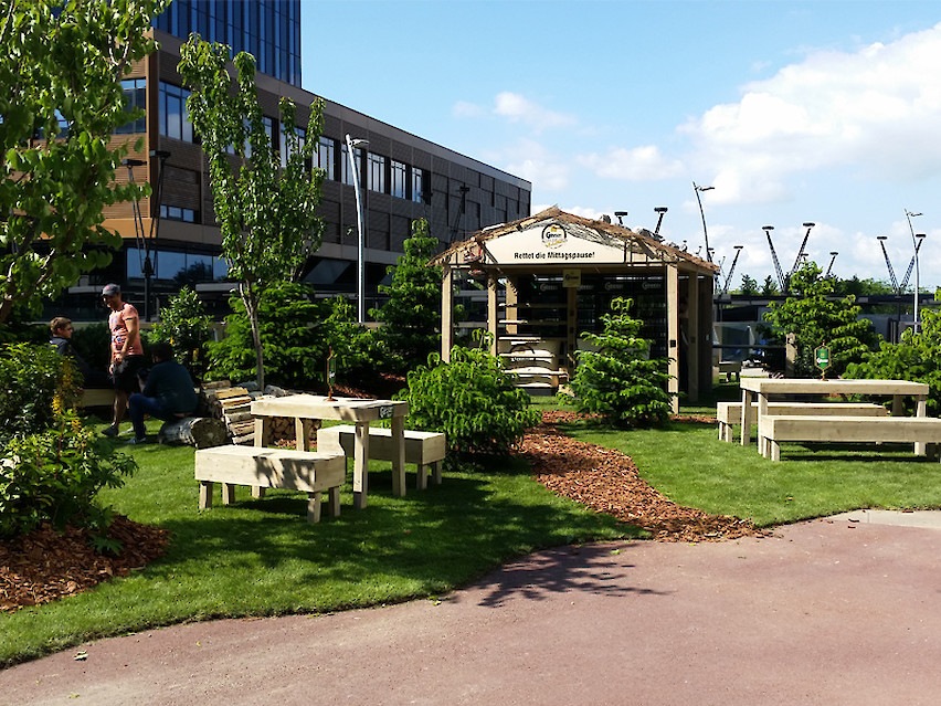 "Rettet die Mittagspause" – Event/Samplingaktion für Gösser Naturgold in Kooperation mit vi knallgrau. Over night errichtete Gösser-Area inmitten von Bürohochhäusern zwecks Verkostung von alkohlfreiem Bier | 1500 Pax