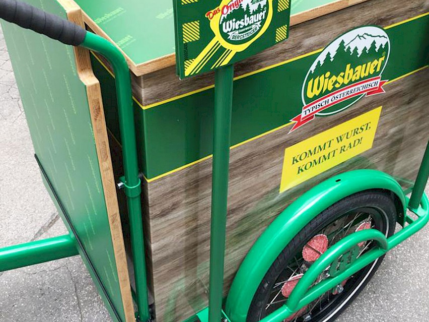 "Wursti 1 und 2": Idee und Produktion von Lasten-Velos für Samplingaktivitäten | Bauchladen- und Bürosampling (in Koop mit 88.6) | Klassische Image-Kampagne für OOH und TV mit integriertem Produkt-Lounge ('Bergsteiger Junior'); konzipiert als Modulsystem mit flexiblen Produkt-Allongen in unterschiedlichen Längen | Parallel dazu: Umsetzung einer komplett neuen Webseite (www.wiesbauer.at) und div. Marken-Landingpages | Seit 2018